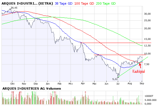 Meine Meinung, keine Kaufempfehlung. Arques ist in meinen Augen immer noch hoch spekulativ. Ich selbst hab einmal Stücke um 10,- Euro erworben und mit 32,5,- verkauft. Jetzt bin ich mit ein kleineren Betrag bei 1,75 wieder rein. Wenn wir jetzt nochmal 32,5 sehen könnten! *gg*