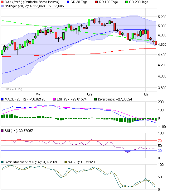 Der DAX wird nicht wie gestern abend noch erwartet bei 4708 öffnen, sondern bei ca. 4650 -4660. Damit gibt es heute kein Eröffnungsgap. Ich gehe noch davon aus das sich der DAX im Laufe des Vormittags wieder auf 4680 vorarbeitet. Für die Emis wäre es natürlich reizvoll noch die KO's bei 4600 abzuholen bevor es wieder aufwärts geht. Erst wenn der DAX unter 4590 fällt ( Tagesschluss ) ist für mich die Sommerrally zu 90% vorbei.