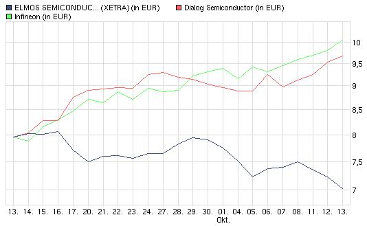anbei der peergroup vergleich der letzten wochen. dialog, infineon haussiert ohne ende. elmos fällt ohne ende.