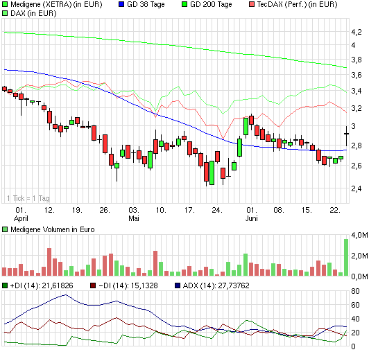 Das war erst das 8.Mal in der 10jährigen Börsengeschichte Medigenes, das über 1Mio Aktien auf Xetra gehandelt wurden..