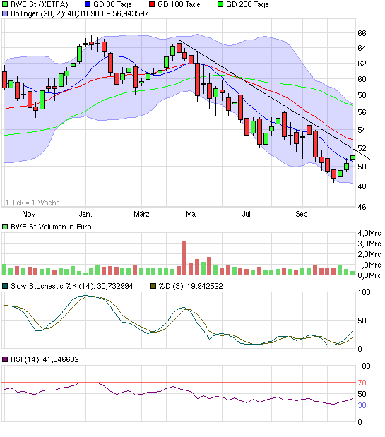 Ob du die RWE nochmal für 48 Euro bekommst glaube ich nicht, aber Kauf- Kurs bis 50 Euro ist ok, dann hast du eine Dividendenrendite von 7% und die Dividende wird mit Sicherheit NICHT gesengt, siehe Bericht aus #154