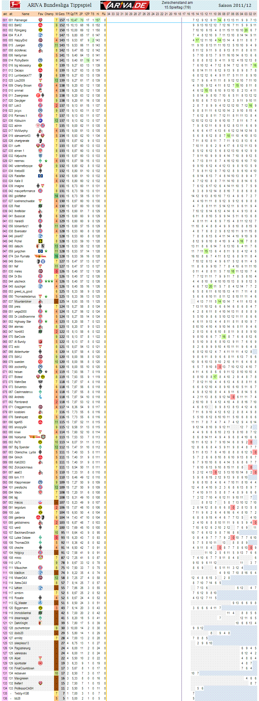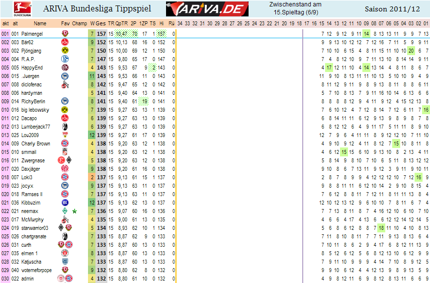 Jetzt stimmt alles. Gesamtpunktzhal, Tendenzen , Spieltag 15 im rechten Teil.. ;o)