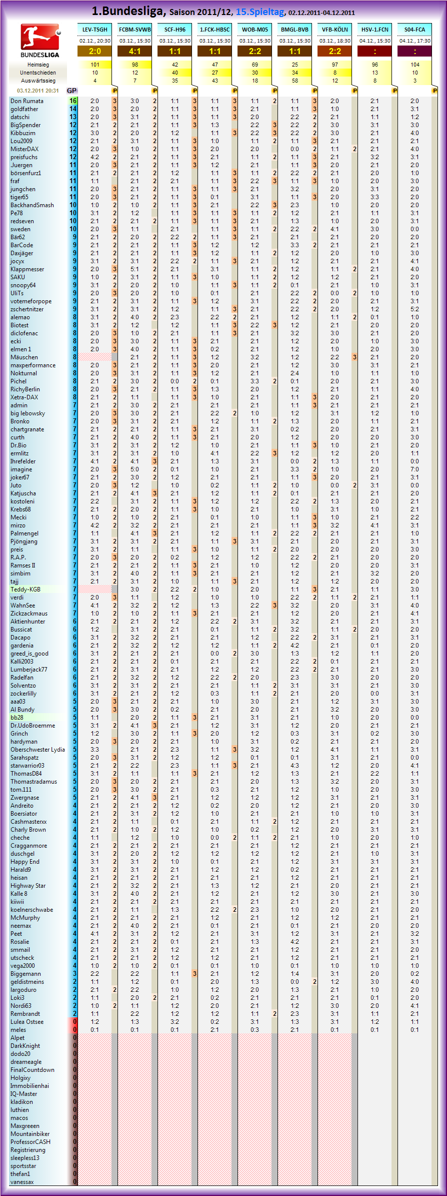 ENDAUSWERTUNG -Spieltag 15- Tagessiegerwertung 9/9