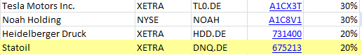 verloren. Von mir fehlen z.B. 3: Tesla, Statoil und Heidelberger Druck