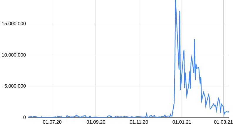 Momentan gibts Haier für unter 2€ und trotzdem werden nur 300-400k Stück am Tag gehandelt.