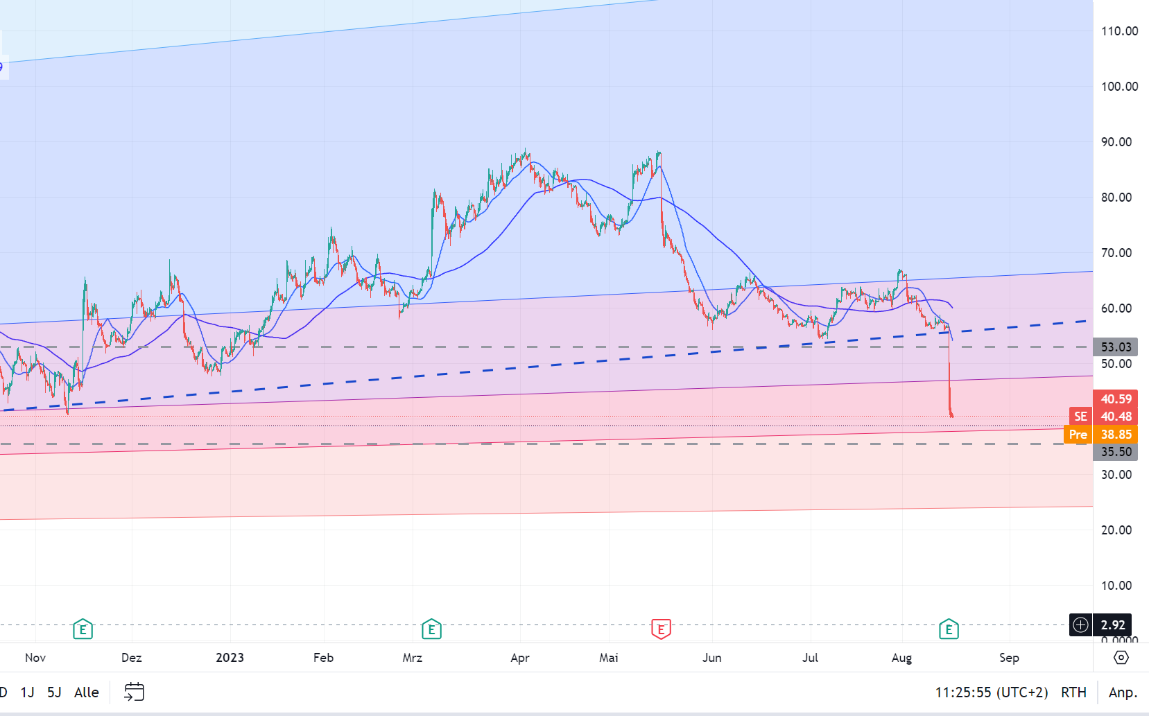 unfassbar. hier regieren jetzt wohl die shorties. in amiland weitere abstufung heute.