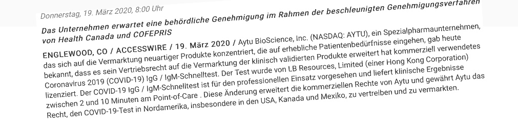 Aytu - die nächste (Corona) Sau wird durchs Dorf..