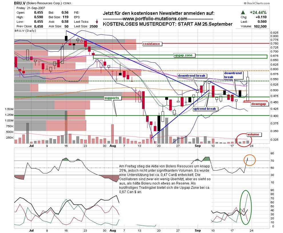 hat in den letzten tagen mal wieder gezeigt was sie kann und ich denke es dürften jetzt auch wieder einige auf die aktie aufmerksam geworden sein. vielleicht wissen hier einige insider schon mehr über die anstehenden bohrergebnisse. klar sind hier aber auch viele zocker und daytrader dran. die nächsten news kommen bestimmt und jetzt beginnt auch noch die beste jahreszeit für rohstoffwerte. unter 1€ wird in meinem depot garnichts von bolero verkauft. kaufen würd ich zum jetzigen zeitpunkt jedoch auch erstmal nicht. der us-housing markt verscheucht noch zu viele käufer von spekulativen pennystock werten und deshalb sollte man in solche werte nie zuviel investieren.