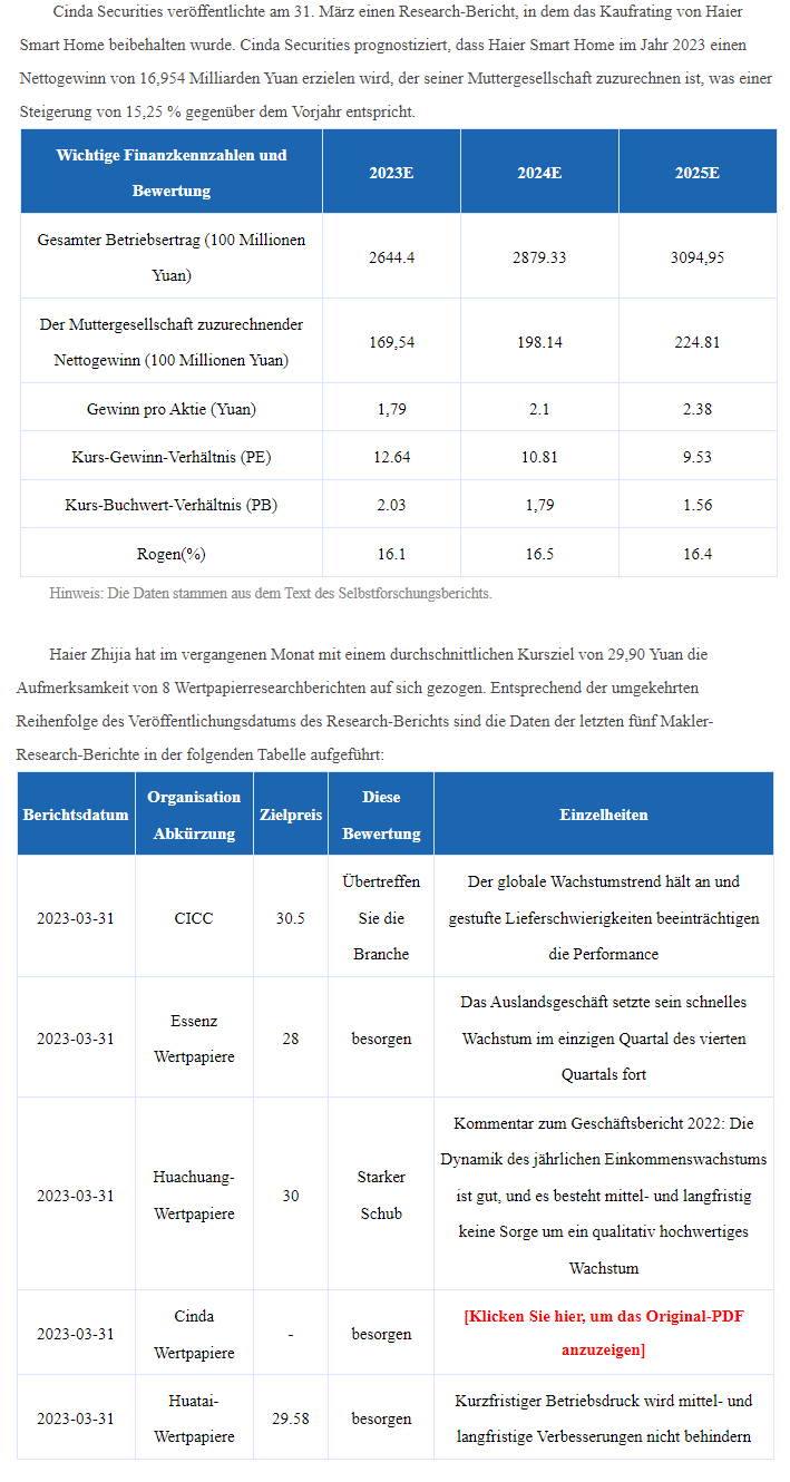 Qingdao / Shanghai / Hong Kong / Frankfurt, 27 April 2023 - Haier Smart Home Co., Ltd. ("Haier Smart Home" oder "das Unternehmen", Börsenkürzel: D-Aktie 690D.DE, A-Aktie 600690.SH, H-Aktie 6690.HK) hat heute seine Zahlen für das erste Quartal 2023 veröffentlicht.