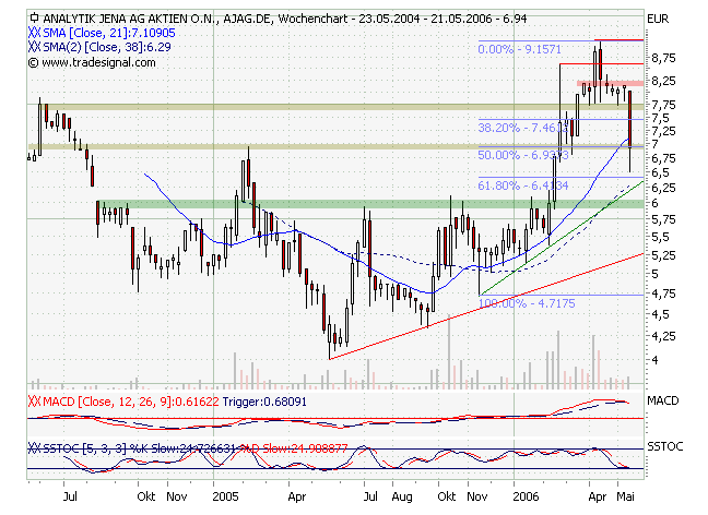 Analytik Jena hat im Unterschied zu Nemetschek sogar bereits für das Jahr 2005/06, dass in 4 Monaten vorbei sein wird, ein KGV von 17. Man wächst stärker als nemetschek und hat sogar eine höhere Cashposition als Nemetschek damals. Und man ist genauso gut aufgestellt.