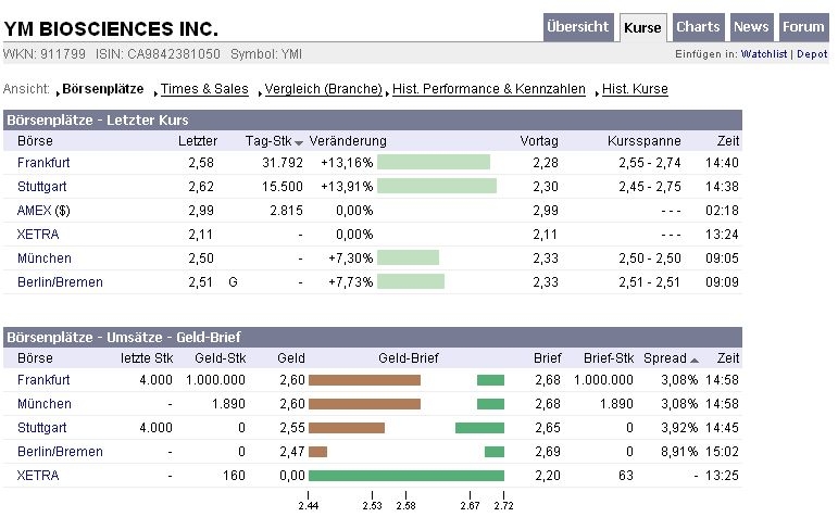 Realtime-Taxe für YM BIOSCIENCES INC. REGISTERED