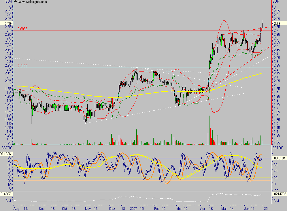 bei 2,69, trotz der zZ unsicheren Gesamtbörsenlage.