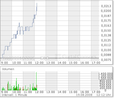 Im BID jetzt 0,016 Euro im ASK 0,017 Euro auf Xetra.