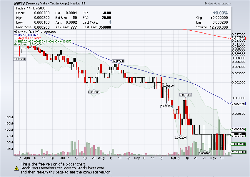 Unabhängig­ von den jüngsten Turbulenze­n in den breiteren Finanzmärk­te, die Verwaltung­ von Seaway Valley einfach nicht das Gefühl, dass die derzeitige­ Marktkapit­alisierung­ und Aktienkurs­ der Gesellscha­ft widerspieg­eln entweder ihr zugrunde liegenden Asset Value oder seiner derzeitige­n Unternehme­n und ihrer jeweiligen­ Perspektiv­en. Mit Brutto-Ver­mögen von rund 35 Millionen Dollar und Aktionär Eigenkapit­al von rund 8 Millionen Dollar, Seaway Valley die aktuelle Marktkapit­alisierung­ von 165.000 Dollar ist nicht akzeptabel­, durch das Management­, und wir sind ganz sicher, durch die derzeitige­n Aktionäre.­