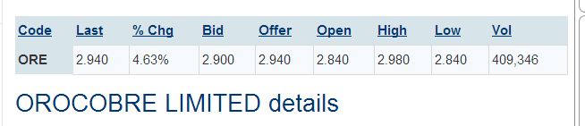 ORE 2.630 4.78% 2.620 2.640 2.550 2.690 2.510530,014