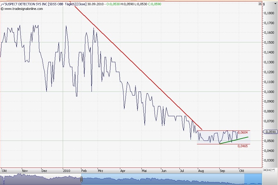 Was bisher stattgefunden hat kann man als PR-Champagne bezeichnen. Wenn die Aufmerksamkeit für SDSS in dem Maße zugenommen hat, wie es das Management wünscht wird sich auch an der Informationspolitik etwas ändern. Zugleich kann ich mir vorstellen, wird dann mit Nachdruck am Kurs gearbeitet werden. Das "Wann" kann nur der IR-Beauftragte Mr. Traiman oder der CEO Mr. Boosidan beantworten. In mehreren Foren wurden die gleichen Fragen an diese Herren gestellt: wann ist mit newsflow zu rechnen? Die Antwort war in etwa immer die Gleiche: SDSS ist nicht auf den großen hype aus, sondern auf Nachhaltigkeit. Also wird man lieber später als früher in die Offensive gehen. Wenn es mal so weit ist, dann eben Nachhaltig. Meine Schätzung geht gegen das Jahresende, nach dem Q3/10 wird sich mehr bewegen. Man kann aktuell von einer Bodenbildung sprechen, der Kurs hält sich im Bereich von 0,05$ stabil. Alles weitere wird sehr schnell gehen, wenn es soweit ist!