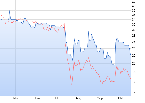 Der in Milliardenhöhe verschuldete Konzern hatte Mitte Juli ein Sanierungsgutachten in Auftrag gegeben. Der Kursrutsch hatte damit nochmals Fahrt aufgenommen. Erst bei 9,50 Euro hatten die Papiere Halt gefunden und waren dann wieder nach oben gedreht in der Hoffnung auf eine Rettung. Für 2024 notieren sie immer noch 57 Prozent im Minus.