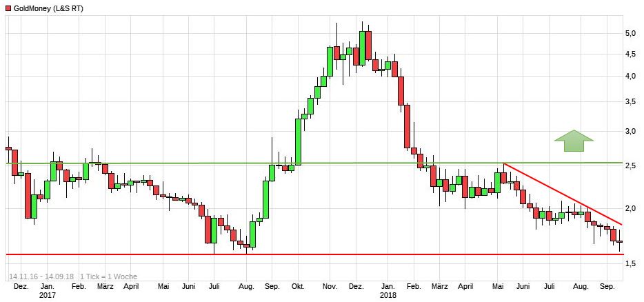 Die 2 Euro sind M. E. Als Wiederstand im Weg und müssen nachhaltig rausgenommen werden. Hinzukommt dass der Goldpreis vom starken USD ausgebremst wird.