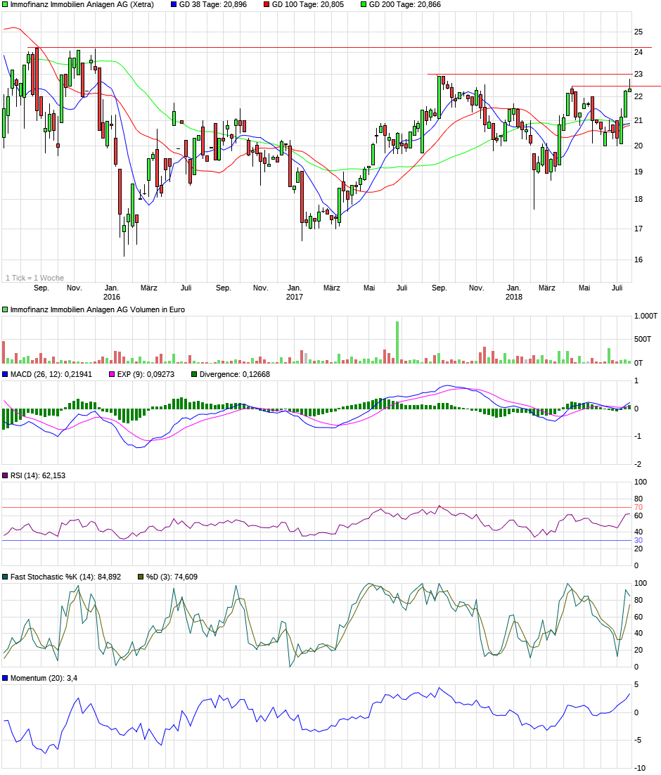Immofinanz ist noch immer dabei, charttechnisch eine Fahne zwischen 22,14 und 22,74 Euro auszubilden.