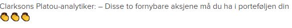 ich bin absolut zuversichtlich und freue mich auf die Präsentation von CEO Valborg Lundegaard am kommenden Donnerstag bei der Pareto Conference..
