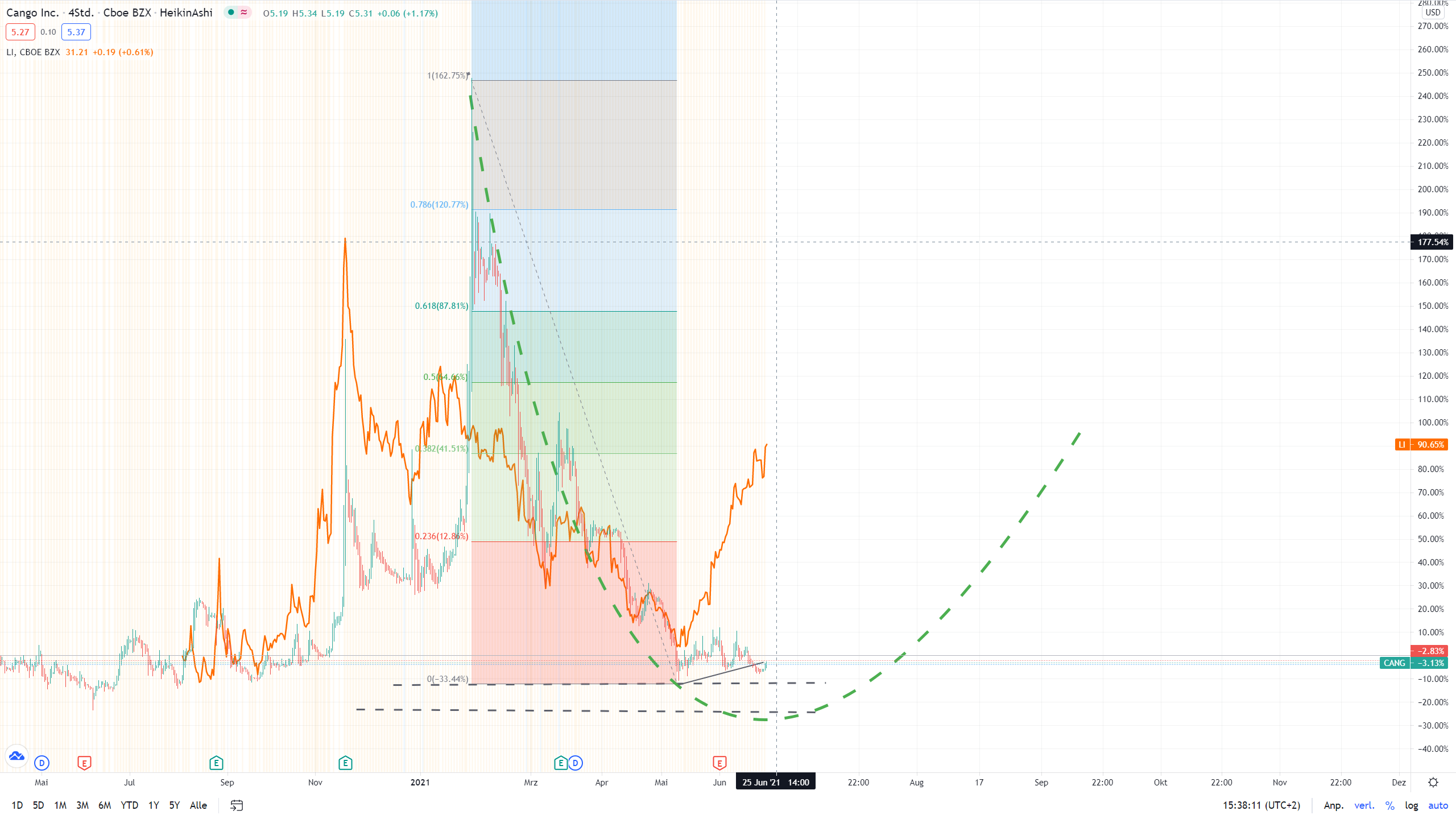 Cangos Market Cap beträgt 0,8048 Mrd USD, davon entfallen auf die Beteiligung an Li heute 1,25 Mrd USD.