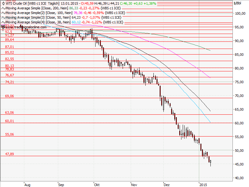 Beim WTI-ÖL läuft es allerdings gegen mich, denn die starke Unterstützung bei 55 USD ist nach unten durchbrochen worden und da wird man schon unruhig und fragt sich wie weit es denn noch fallen kann und da ist mir aufgefallen, dass WTI-ÖL bereits jetzt u n t e r dem Katastrophen-Tief von 2009 von 60 USD liegt und somit wohl nach unten gut abgesichert ist, während Brent-ÖL noch v i e l weiter bis auf 35 USD gefallen ist !!!