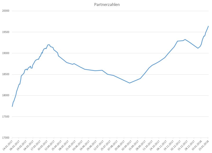 MH wächst weiterhin konstant, bemerkenswert ist das gute Wachstum an Partner in 2017, vor allem ab Q3 2017 ist dieses sehr positiv zu sehen, da sonst üblicherweise ab Ende Q2 nicht mehr viele neue Partner hinzu kamen.