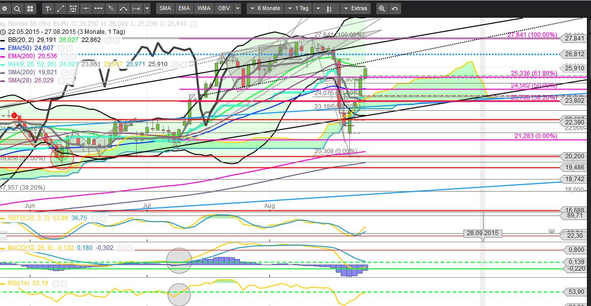 Spannend, ab heute, selbst wenn der Markt langsamer voran kommt, Dax sollte bis 107xx laufen zur 61er zum korrigieren des Absturzes... Nordex ich schon weit über das 61er also auch bullisch.