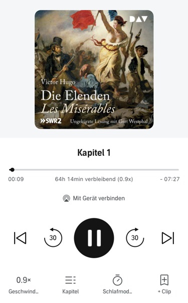 …ich zieh mir grad nen französischen Klassiker rein: „Les Misérables“ = „Die Elenden“, von Victor Hugo, der auch schon den „Glöckner von Notre Dame“ schrieb, als 60 stündige