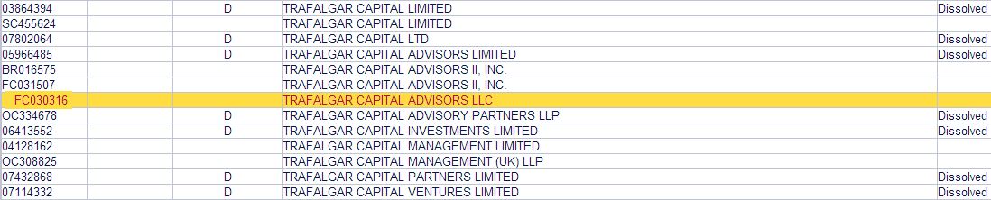 Previous Name: TRAFALGAR CAPITAL ADVISORS LLC