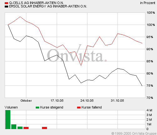 für diejenigen, die zu den ersten Kursen am Tag der Erstnotiz um die 60 EUR gekauft haben. Ich denke aber, dass ERSOL den Vorteil hat, dass sie langfristige Lieferverträge mit den Siliziumlieferanten besitzen. Wenngleich das KGV der Solarwerte natürlich sehr ambitioniert ist.