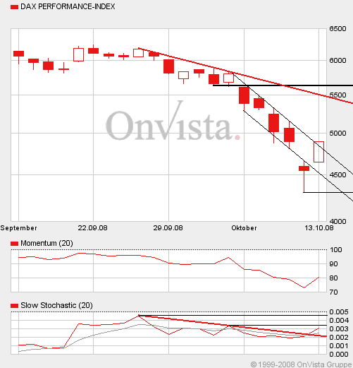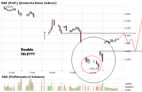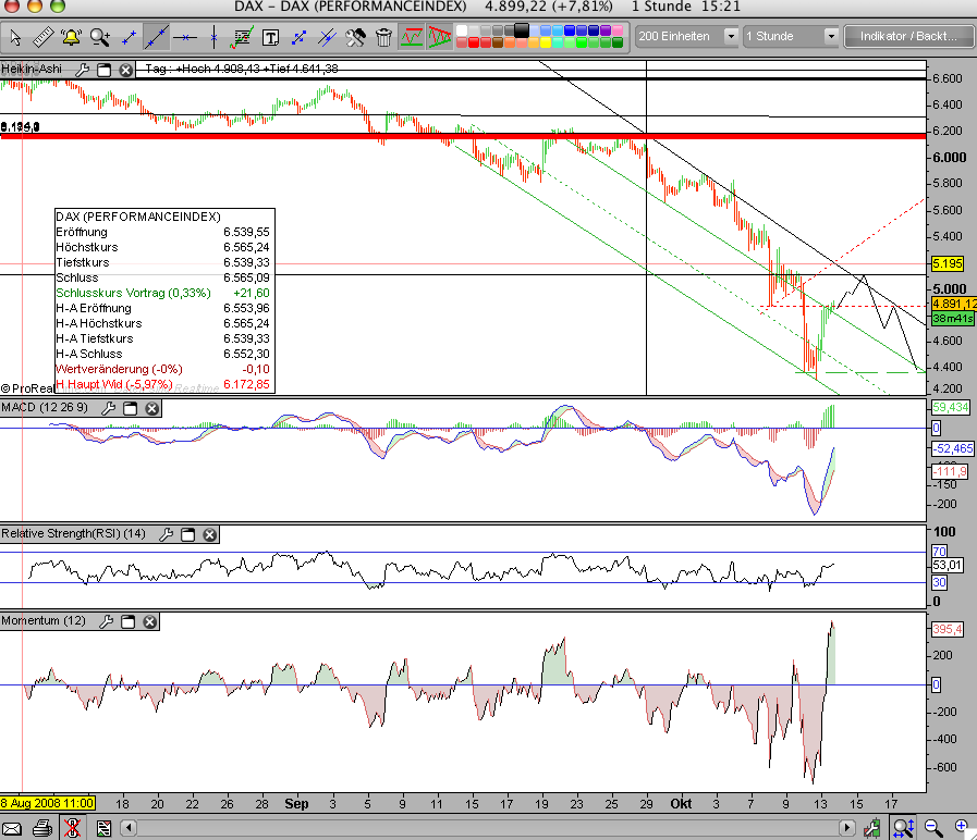 die Trendlinie ist durchbrochen, aber die Dynamik fehlt etwas. Der Widerstand (TL) ist quasi jetzt die Unterstützungszone, somit wäre ein Rücklauf bis ca. 4820 möglich. Ist aber nur ganz kleine Zockerposie und sehr spekulativ.