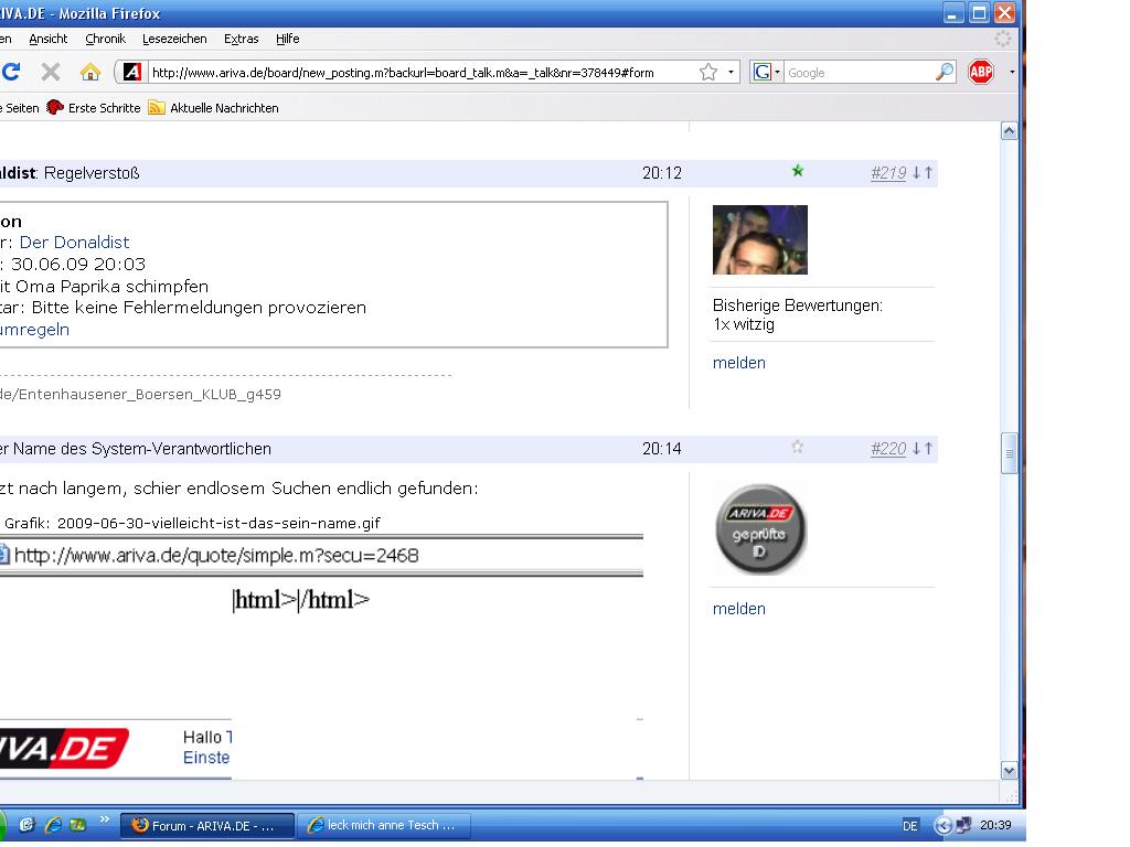 geschrieben, sind solche Tests, die von der Betreiber-Seite ohnehin ROUTINE-mäßig durchgeführt werden, auch von Seiten derer USERS nötig, "um zwischen denen von verschwundenen oder in's Groteske verzerrten CURSEN geplagten BÖRSIANERN und denen von verschwundenen oder verzerrten BILDERN oder LOGOS geplagten TALKERN ein GEMEINSAMES Vorgehen gegen diese systemischen Mängel vorbereiten zu können".