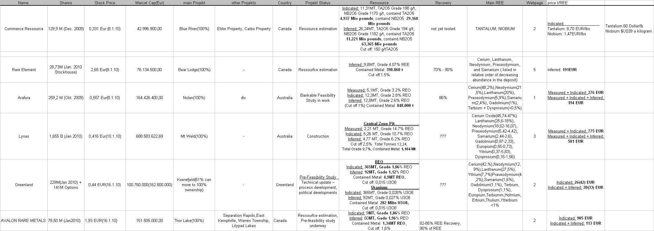 Eine Abmilderung dieses Szenarios ist aktuell nicht in Sicht. Außerhalb Chinas existieren nur wenige REE-Projekte. Und selbst diese stecken zumeist noch in den entwicklungstechnischen Kinderschuhen. Der Kampf um diese REE-Projekte hat dabei schon längst begonnen. Verwunderlich ist es bei der Haltung Chinas nicht, dass zum Beispiel die Regierung Australiens die Übernahme der Lynas Corporation auf eigenem Boden im letzten Jahr gestoppt hat." Quelle Rohstoffwelt.de