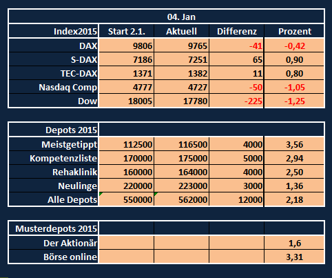 Hier die Übersciht, die ersten haben schon einen kleine Blitzstart hingelegt, während mein Depot leider gleich wieder ans Ende gerutsch ist. Ich hoffe aber, das wird sich in diesem Jahr schnell wieder ändern.