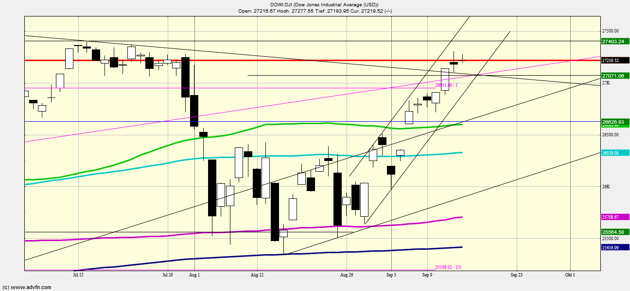 charttechnisch läuft die untere Unterstützung im DOW bei runden 27.000 am Montag...