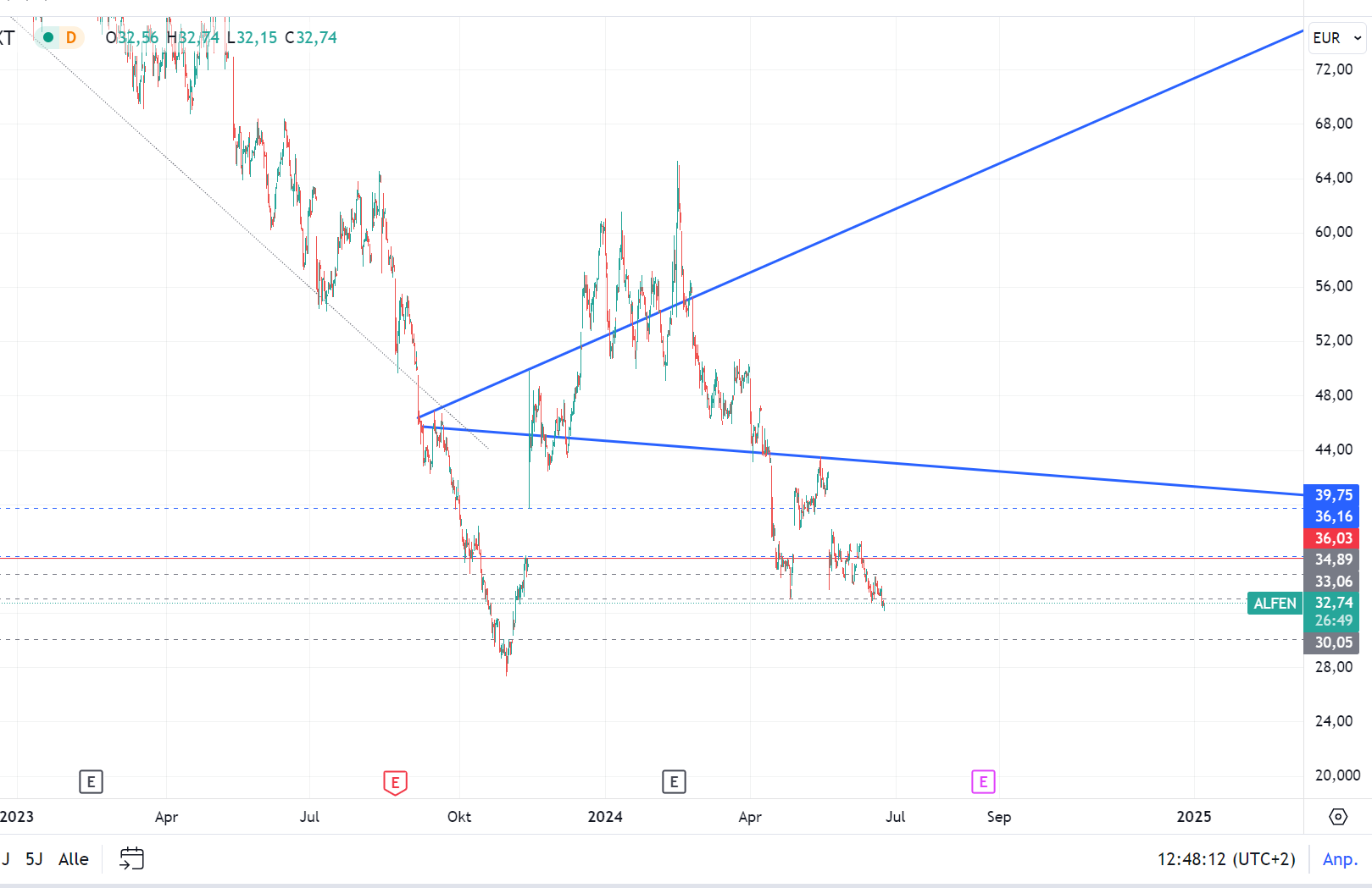 schließt konkret an den Text vom November 2023 an. Auch wenn der Kurs danach kurzzeitig hochging und sich seitdem halbiert hat, so bleibt die hier gepostete Analyse immer noch gültig. Zum nächsten gapclose sind es nur noch 6 - 7% und da unten sollte sich dann auch mal ein Boden bilden, damit sich kein weiteres Tor öffnet.