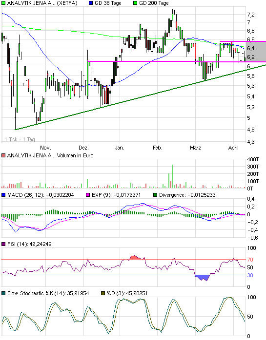 langfristig finden sich bei AJA diverse Ein- und Austiegspunkte, in Posting 2078 steht auch sehr richtig (mMng), dass der Trend erst wieder ab 6,50 wirklich als bullish zu bezeichnen wäre. Folgerichtig ist demnach die jetzige Situation eher als neutral bis bearish (6€ Szenario) zu bewerten und wenn jemand Gewinne mitnehmen kann, was spricht dagegen ? Ich wollte hier auch nicht meckern oder so, sondern lediglich auf die Schwankungsbreite dieser Aktie hinweisen, die auch in diesen Tagen nicht ohne Risiko ist.