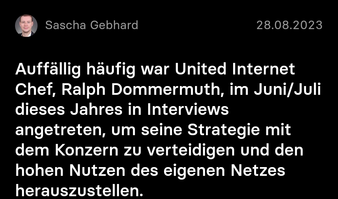 Der Aufbau von 1&1 habe zweifellos zu zusätzlicher Unsicherheit geführt, aber die Informationen über den Wert der von 1& 1 geschlossenen Verträge und die sich deutlich verbessernden Ertragsaussichten bei Ionos stimmten zuversichtlich, dass das Ertragsprofil von United Internet bei einem Umsatzwachstum im mittleren einstelligen Bereich weiter stabil bleiben könne.