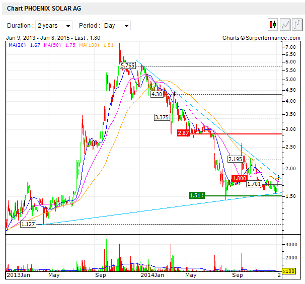 Nachdem es einen Insiderkauf gab steht der Kurs vor dem Bruch des Abwärtstrends. Sollte dies passieren und vielleicht sogar auch noch von einer positiven Meldung untermauert werden, könnte sich der Kurs zwischen 2,50 Euro - 3 Euro einpendeln.