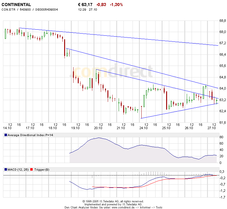 Heute war mit Conti gut Geld zuverdienen mein W nimmt langsam Formen an wenn der Markt positiv bleibt sollte das ne nette Korrektur nach oben geben + die Zahlen am 02.11.05 gut sind. Wer gestern long ist hat schon gut Geld gemacht ...