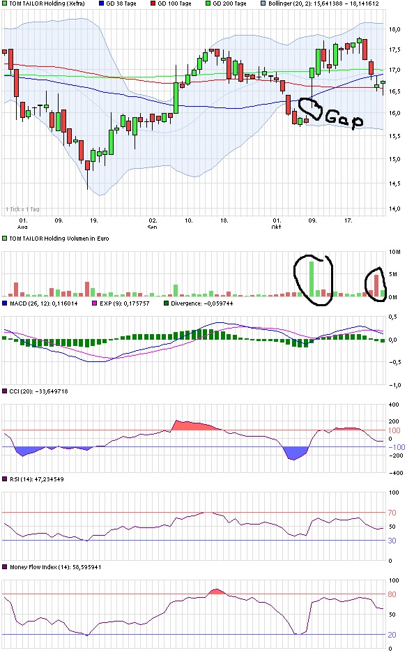 was mir besonders im 3Mon. Chart auffällt sind die doch sehr großen Umsätze an den 2 Tagen der kursrelevanten Meldungen. Zum einen die bullische Meldung wg. Bonita, wo man am nächsten Tag vom 08.10. auf den 09.10. mit einem großen Gap (eingezeichnet) eröffnet hat und das mit riesigen Umsätzen und natürlich zum Anderen mit der bearishen KE Meldung wo man ebenfalls sehr große Umsätze mit Mini Gap nach unten eröffnet hat.