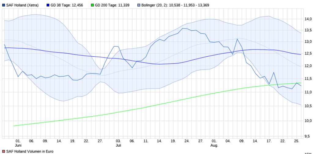 Die 200 Tage Linie bei 11,33 wurde sehr lange nicht mehr berührt. Der Markt scheint dem Unternehme (aktuell) den starken Wachsum nicht nachhaltig zuzutrauen.
