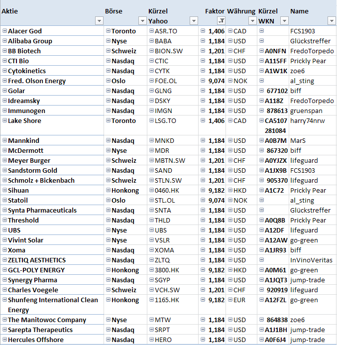 Alle genannten Werte müssen an einem deutschen Börsenplatz notiert sein. Das haben wir geprüft und trifft auch auf alle Werte zu.