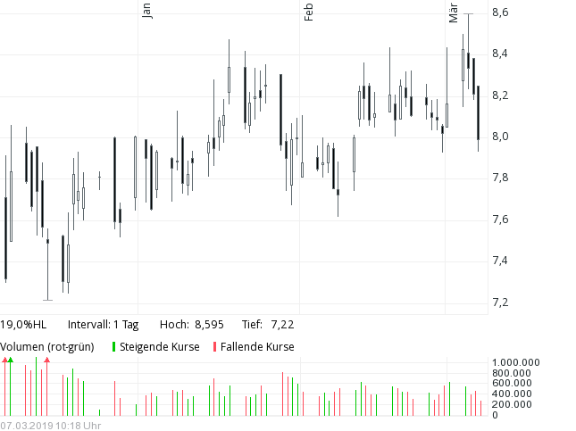 Interessant wird die Aussage zur Zwischendiv. ..die kommt Mitte Mai ..und lag 2018 bei 25 Cent ...was schon rund 3 % Rendite wäre auf den momentanen Kurs ...
