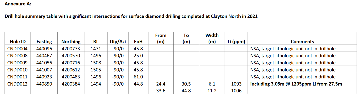 "The remaining five holes intersected coarse gravel and conglomerate sedimentary units with minor lithium mineralisation. The geologic model was revised on-site as the holes were drilled and it was decided not to complete the remaining holes" (siehe Anhang bzw. Link)