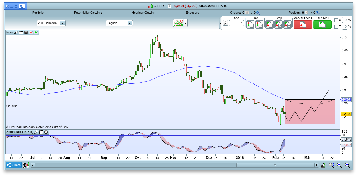 sehe das ganz ähnlich wie du. pharol könnte einen doppelboden ausbilden, was natürlich nochmals mit einem kursrückgang richtung 0.17 einherginge. wenn sich der kurs dann wieder fängt und die märkte unseren wunschvorstellungen entsprechen, kann sich der kurs auf die reise machen, wenigstens 0.50 und dann hoffentlich neue höhen zu erklimmen...