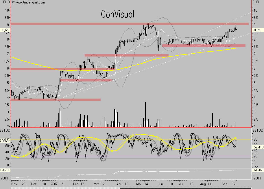 Jedoch sollte nicht vernachlässigt werden, dass Convisual ein sensibler Wert ist: Meist kleine Volumina, an manchen Tagen nahezu gar kein Handel.