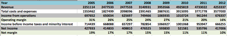 Leider sind die Margen über die letzten Jahre kontinuierlich geschrumpft (siehe Grafik) und der Nettogewinn konnte somit kaum gesteigert werden. Anscheinend vermiest die Konkurrenz zunehmend das Geschäft, hat dazu jemand Infos? Kenne mich mit dem Marktumfeld für Apollo nicht besonders aus...
