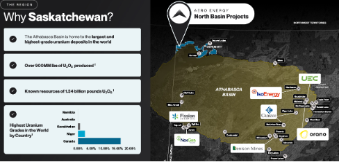 Wenn es einen Ort auf der Welt gibt, an dem sich Uranexploration am meisten lohnt, dann ist es das ‚Athabasca Basin‘ in Kanada. Diese Region beherbergt einige der hochgradigsten Uranlagerstätten der Welt, die derzeit etwa 20 % des globalen Uranbedarfs decken. Zehn der fünfzehn hochgradigsten Uranprojekte weltweit befinden sich hier – und genau in diesem „epizentralen Hotspot“ liegen die Explorationsgebiete von Aero Energy (WKN: A4007Y).